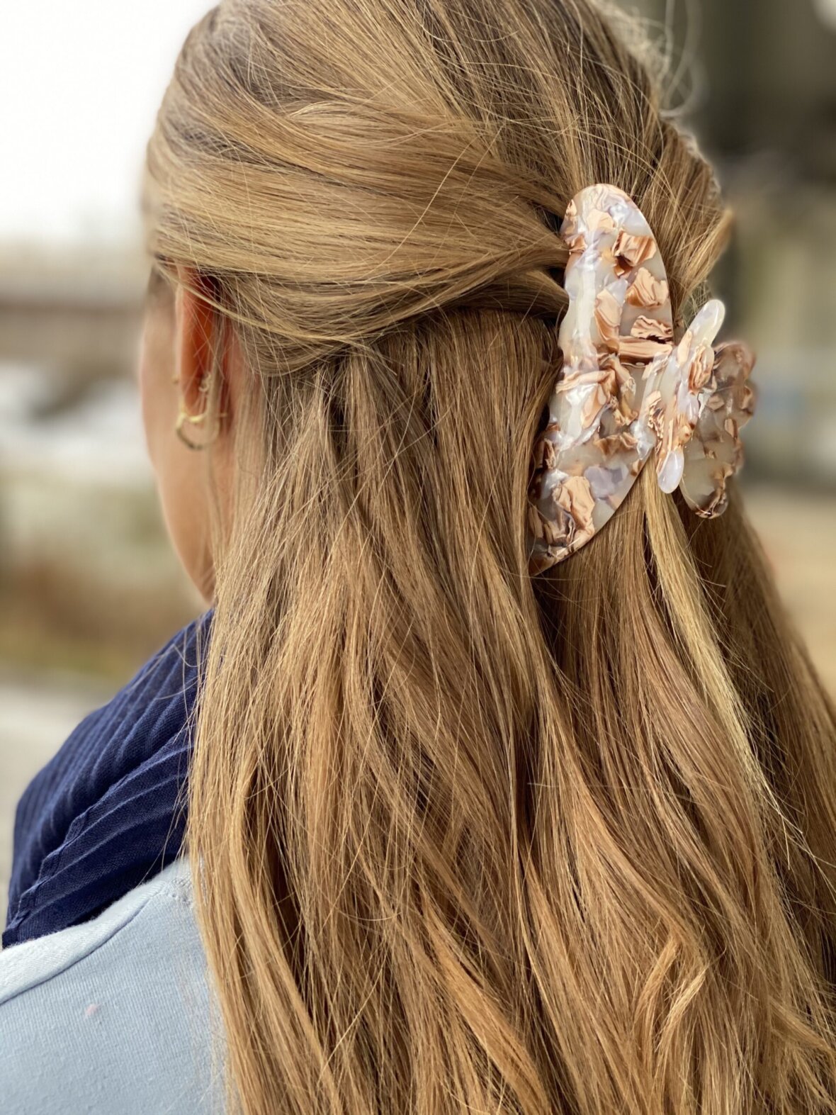 AGNES hårklemmen er en flot kraftig stor klemme der nemt og elegant få alt hår væk fra ansigtet. Hårklemmen sidder perfekt og holder på håret hele dagen. Den er 11 cm lang.