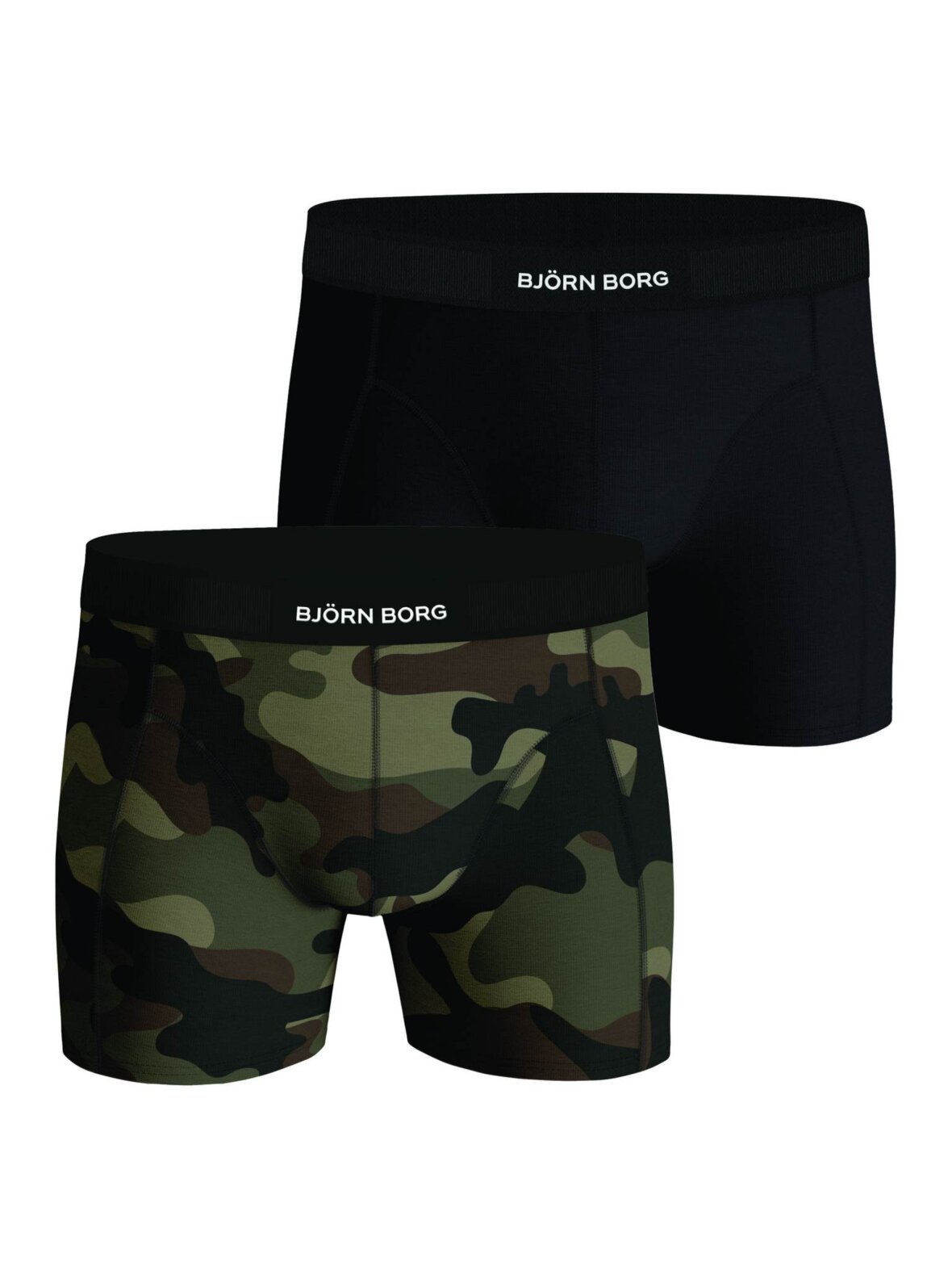 Björn Borg underbukser i en 2 paks udgave, hvor den ene er sort og den anden er camo. Pasformen er reguler fit.