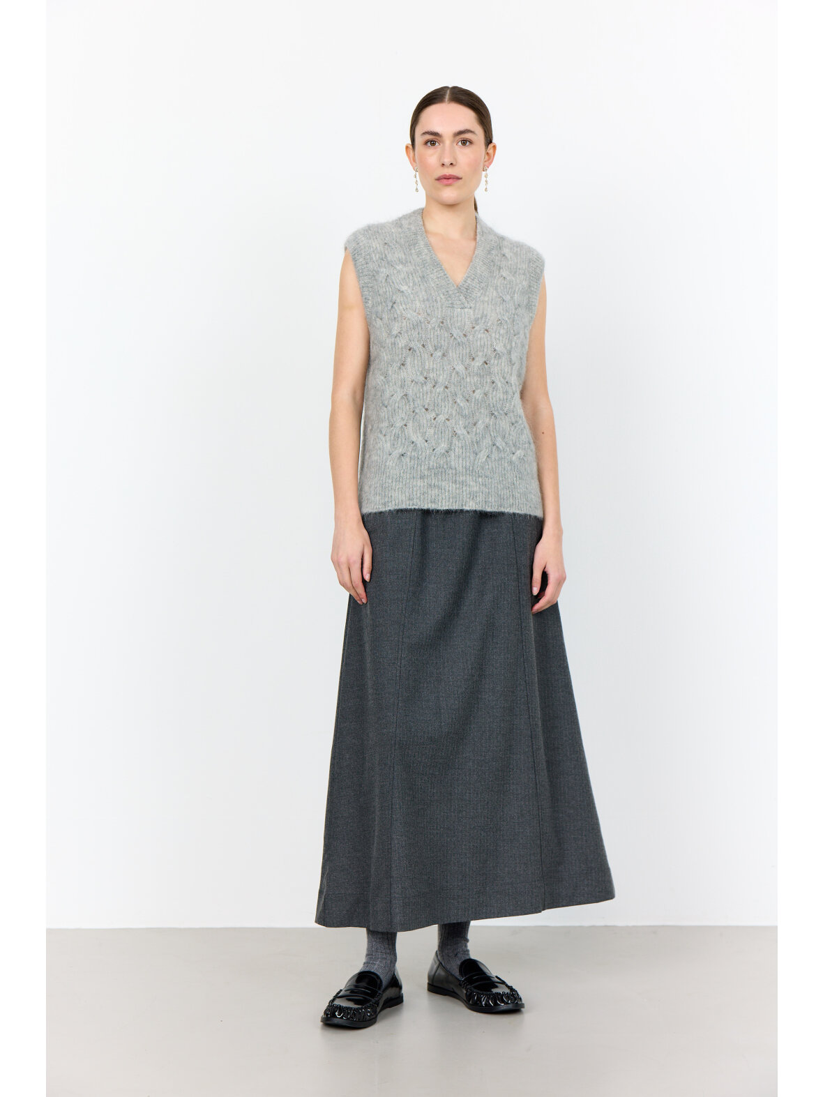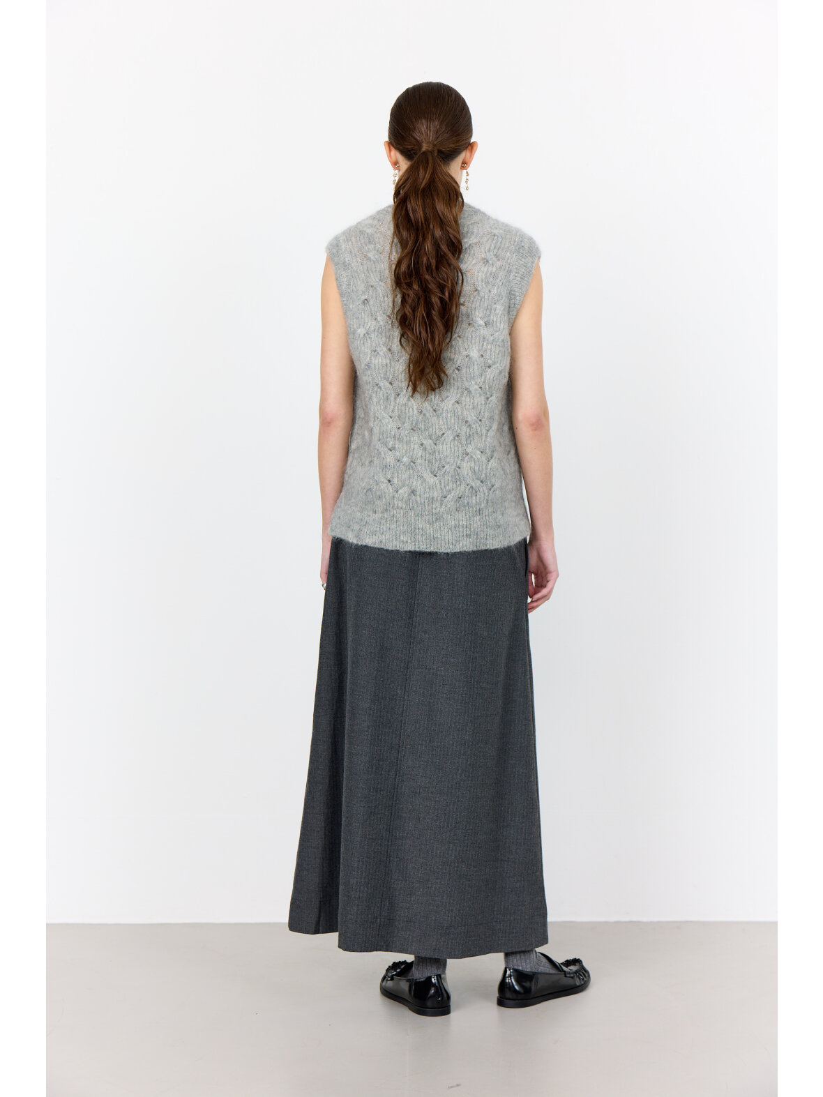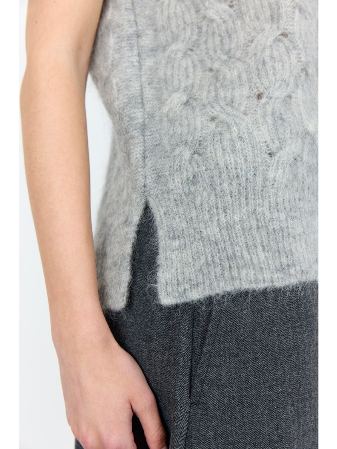 Den grå farve gør det nemt at matche vesten med forskellige outfits, og den passer perfekt til både jeans og kjoler. Gør din garderobe komplet med denne alsidige vest, der er designet til at holde dig varm og stilfuld i alle sæsoner.