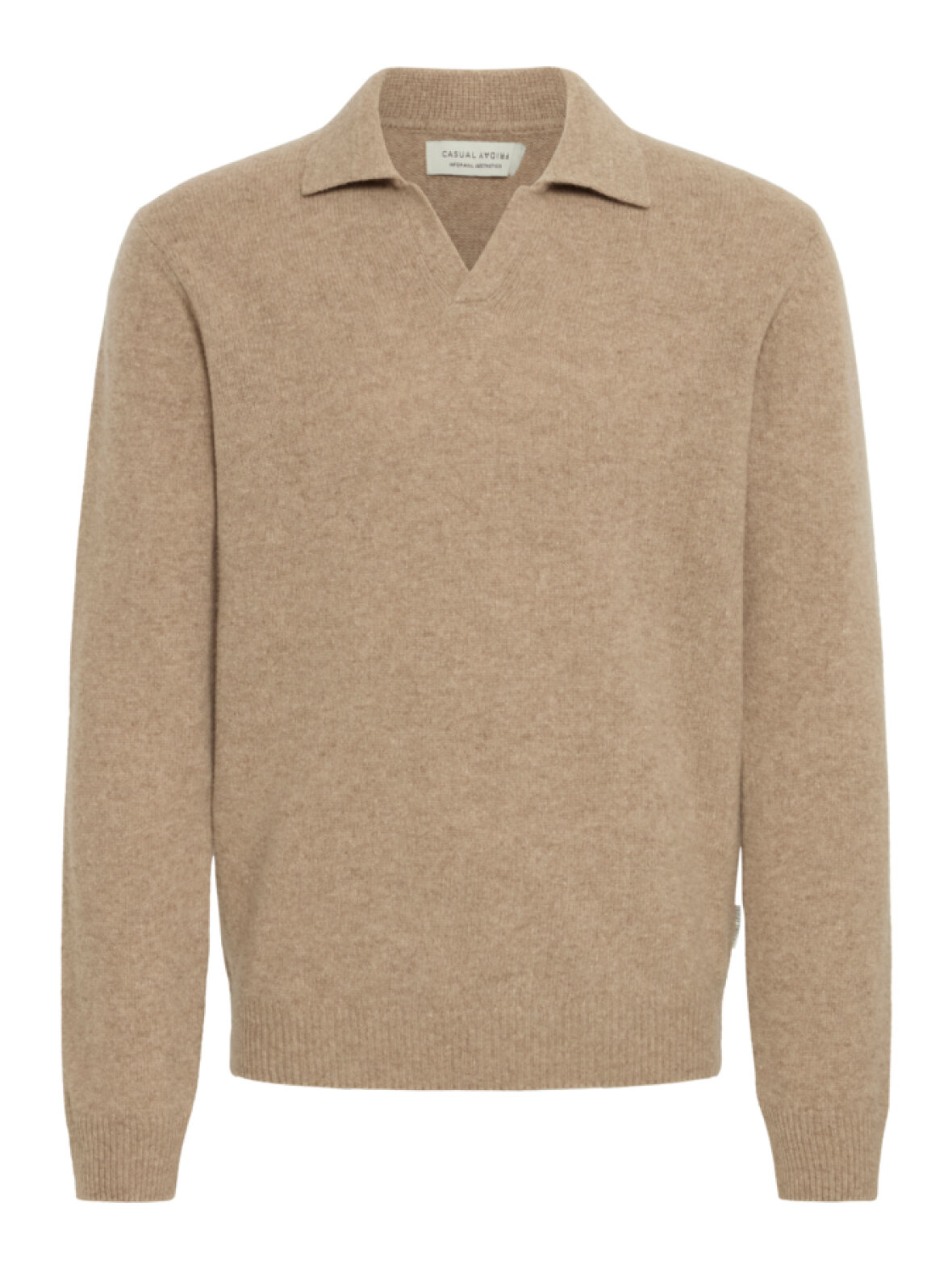 Oplev den ultimative komfort med Casual Friday lambswool poloen, der er designet til moderne mænd, der værdsætter stil og kvalitet. Denne polo er lavet af lækker lambswool, hvilket giver en blød og varm fornemmelse på huden – perfekt til de køligere dage. Den elegante sandfarve gør den let at kombinere med både jeans og chinos, så du kan skabe et afslappet, men stilfuldt look til hverdag eller weekend.