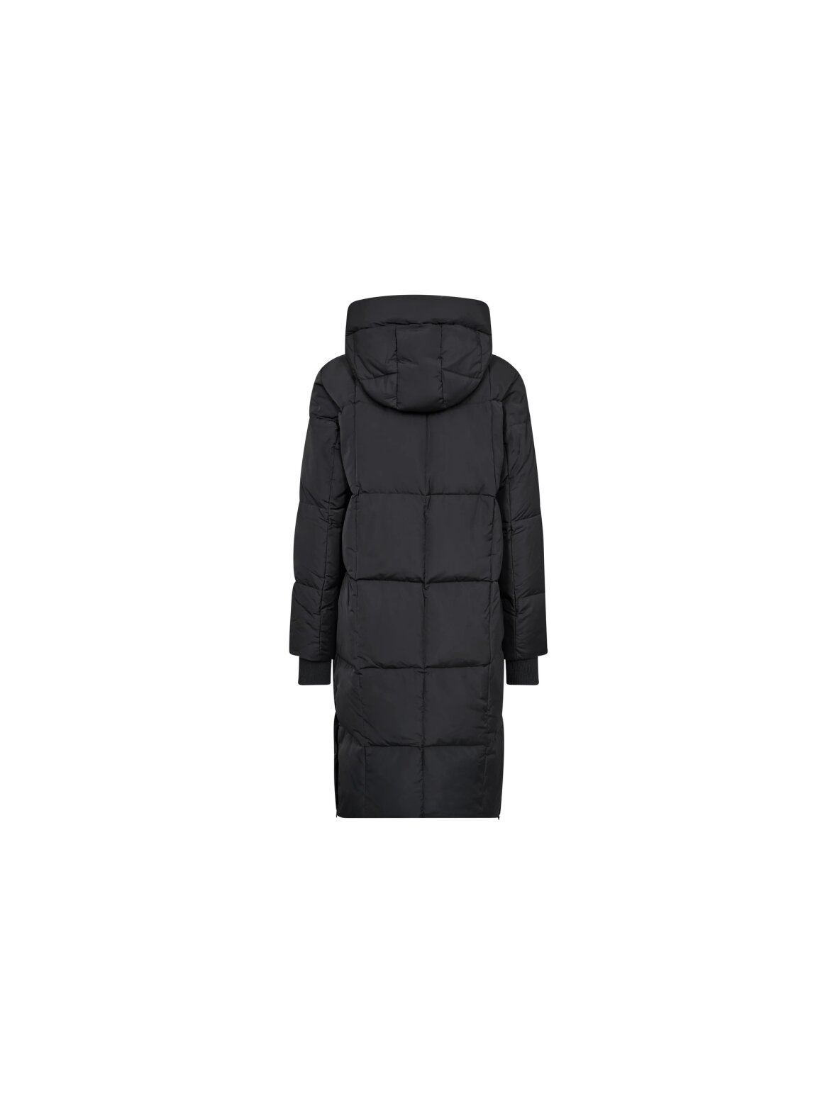 - Design: Lang pasform med høj krave og hætte, kraftig lynlås og sidelommer.