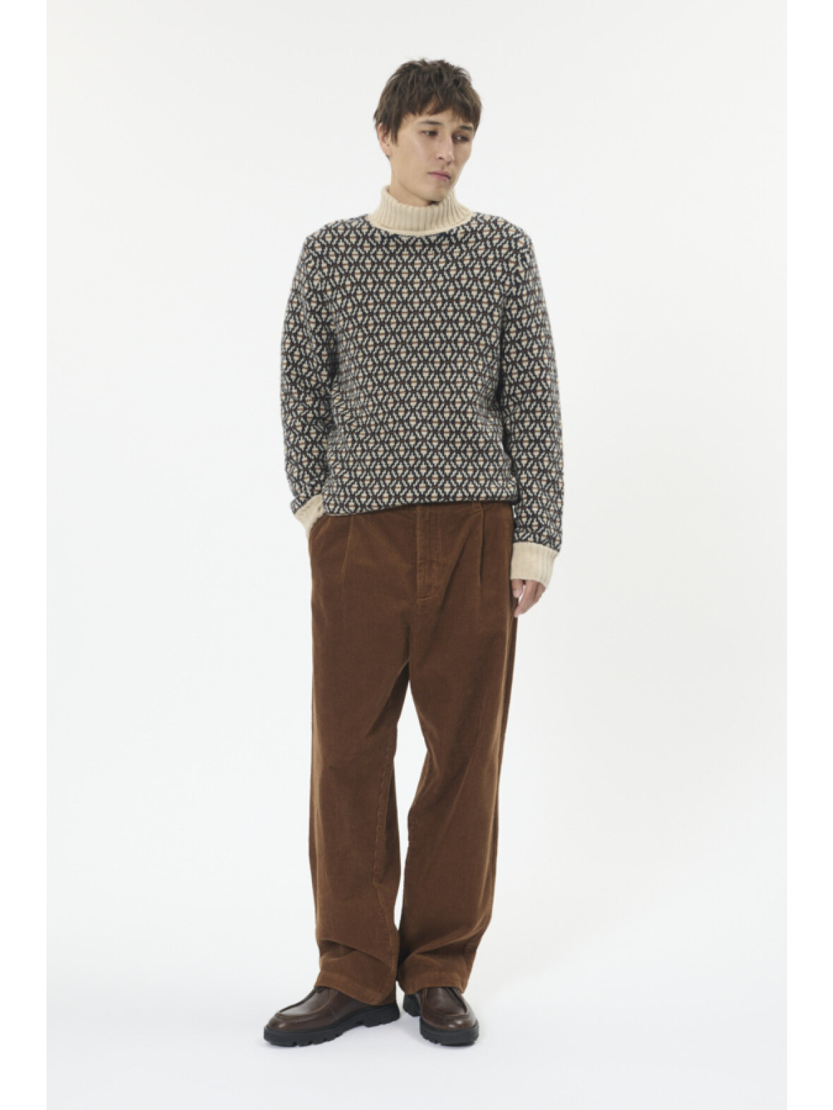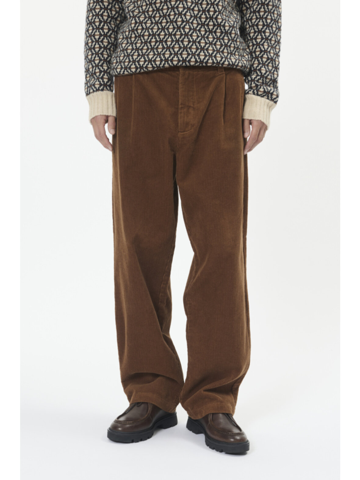 Bredbenede fløjlsbukser fra MATINIQUE med tekstureret overflade, høj talje med bæltestropper og frontlæg. Lige ben og afslappet pasform giver et tidløst look.
