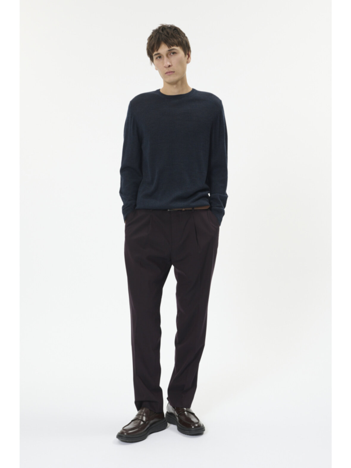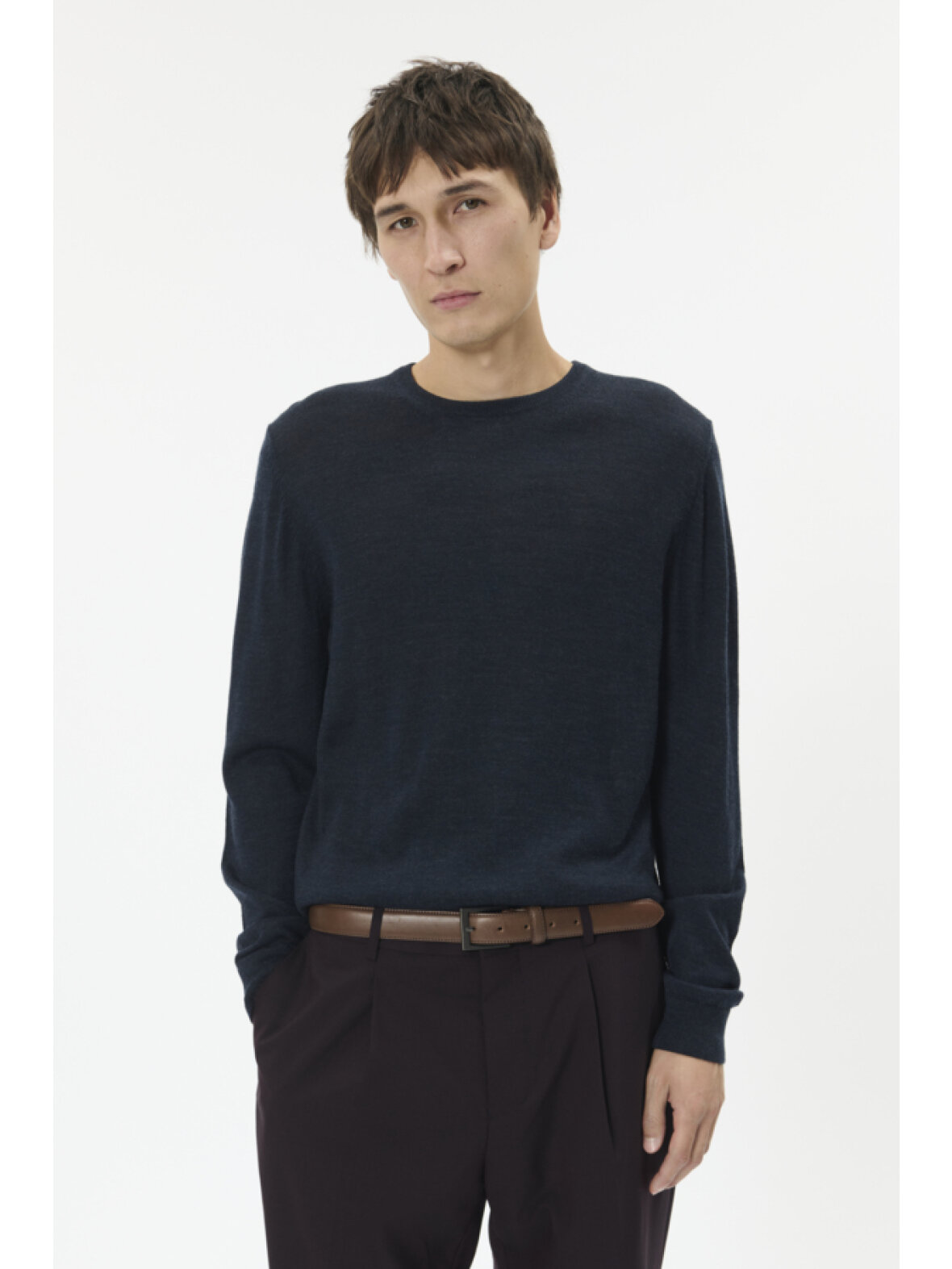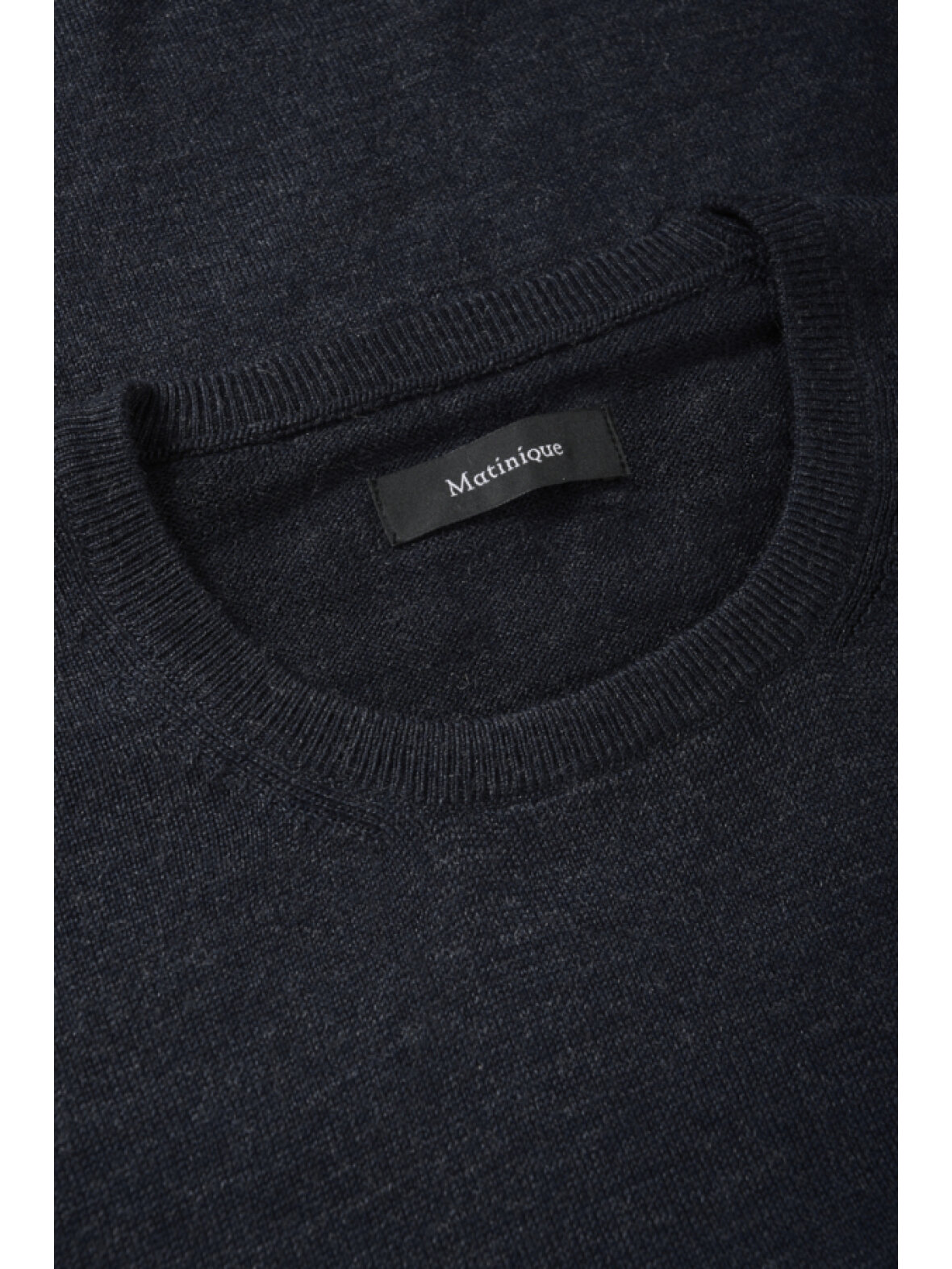 Klassisk pullover med rund hals fra MATINIQUE. Finstrikket i lige pasform med ribkanter ved ærmer og bundkant, behagelig og alsidig til både hverdag og arbejde.