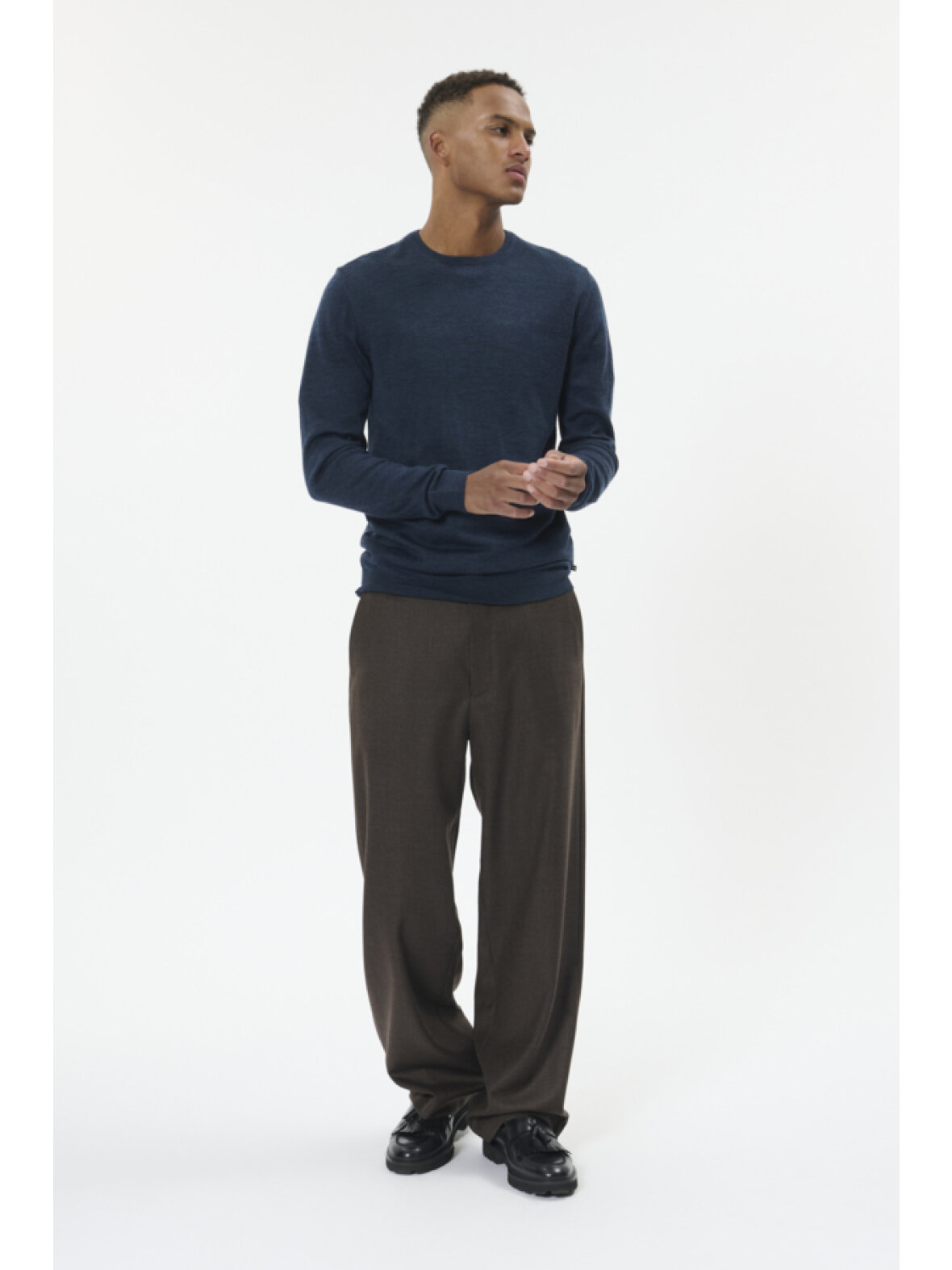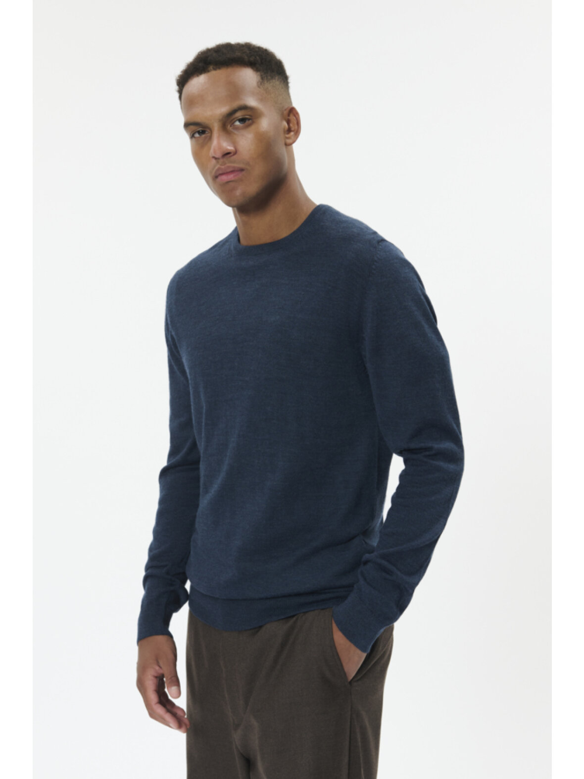 Klassisk pullover med rund hals fra MATINIQUE. Finstrikket i lige pasform med ribkanter ved ærmer og bundkant, behagelig og alsidig til både hverdag og arbejde.