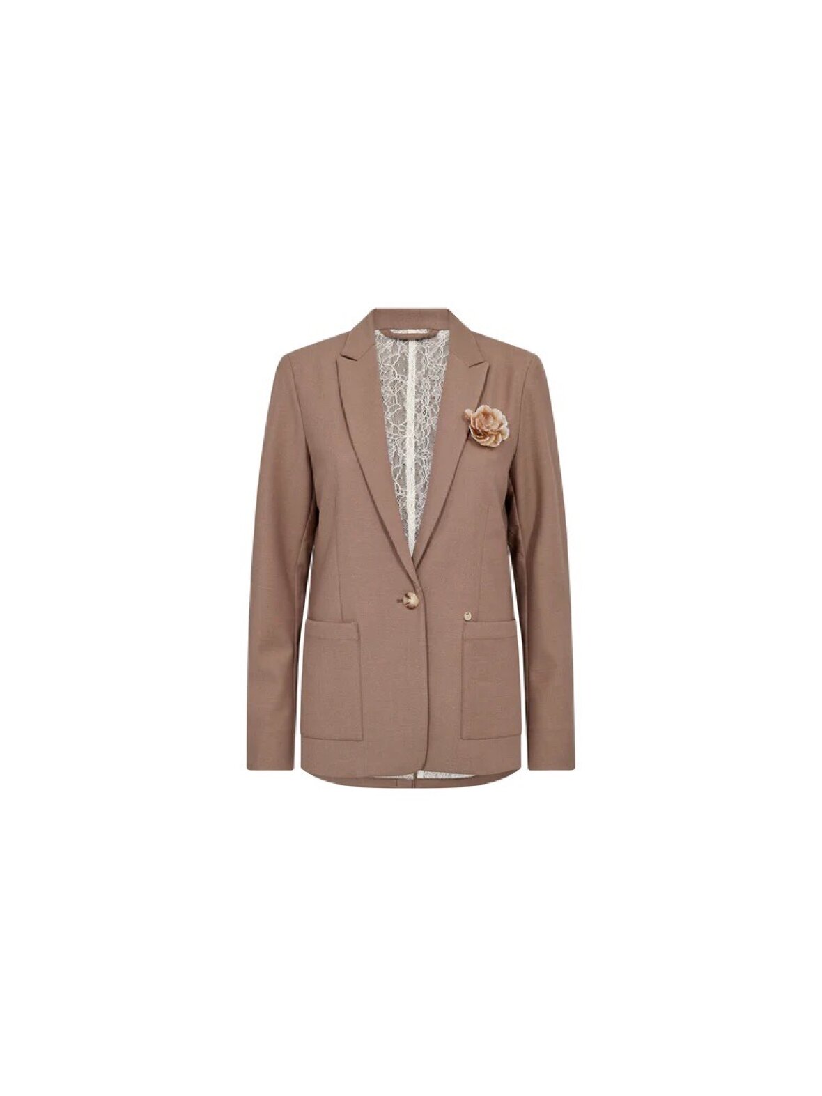 - Meleret struktur: Det bløde, melerede materiale tilfører tekstur og dybde, hvilket giver blazeren et eksklusivt og moderne udtryk.