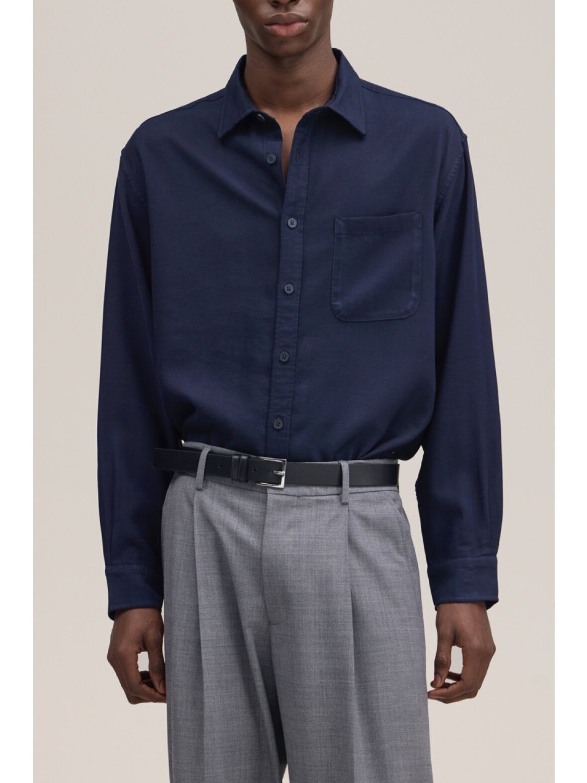 Stylingtip: Den mørkeblå nuance og materialets glans gør den perfekt til et par lyse hørshorts om sommeren eller under en struktureret overshirt for et stærkt lag-på-lag look.