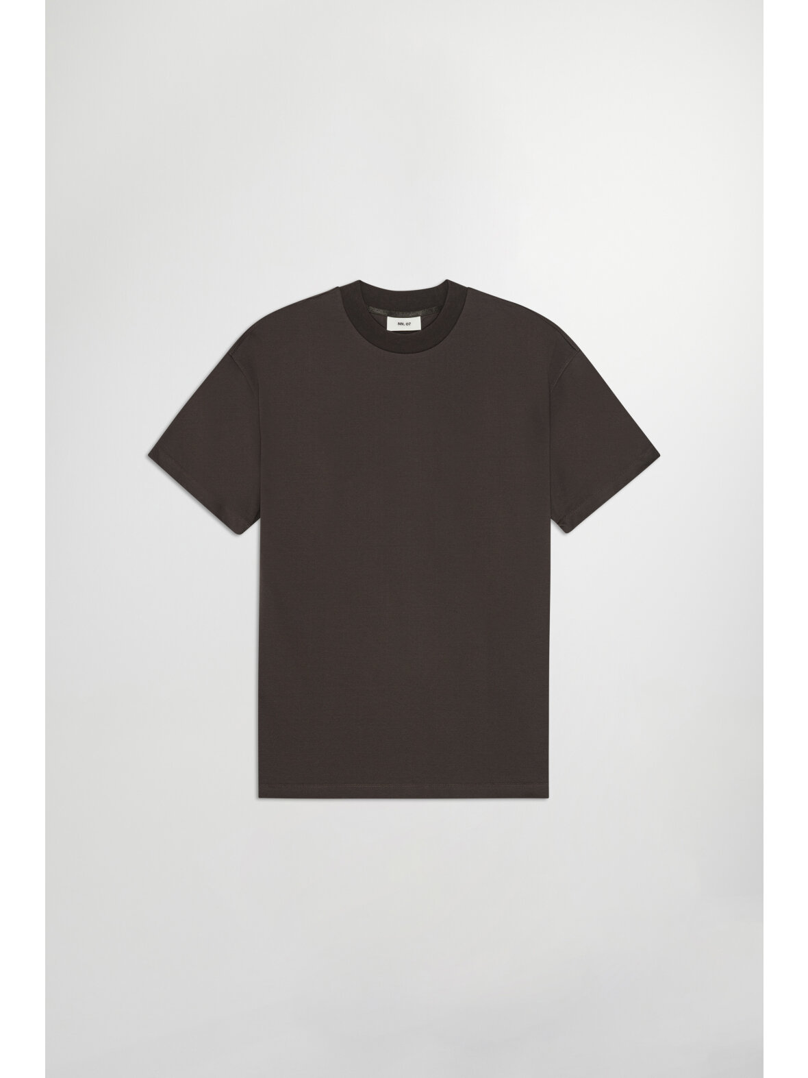 - Dyb farveintensitet: Farven Deep Truffle (#880) fremstår rig og mættet, hvilket giver t-shirten et luksuriøst udseende.