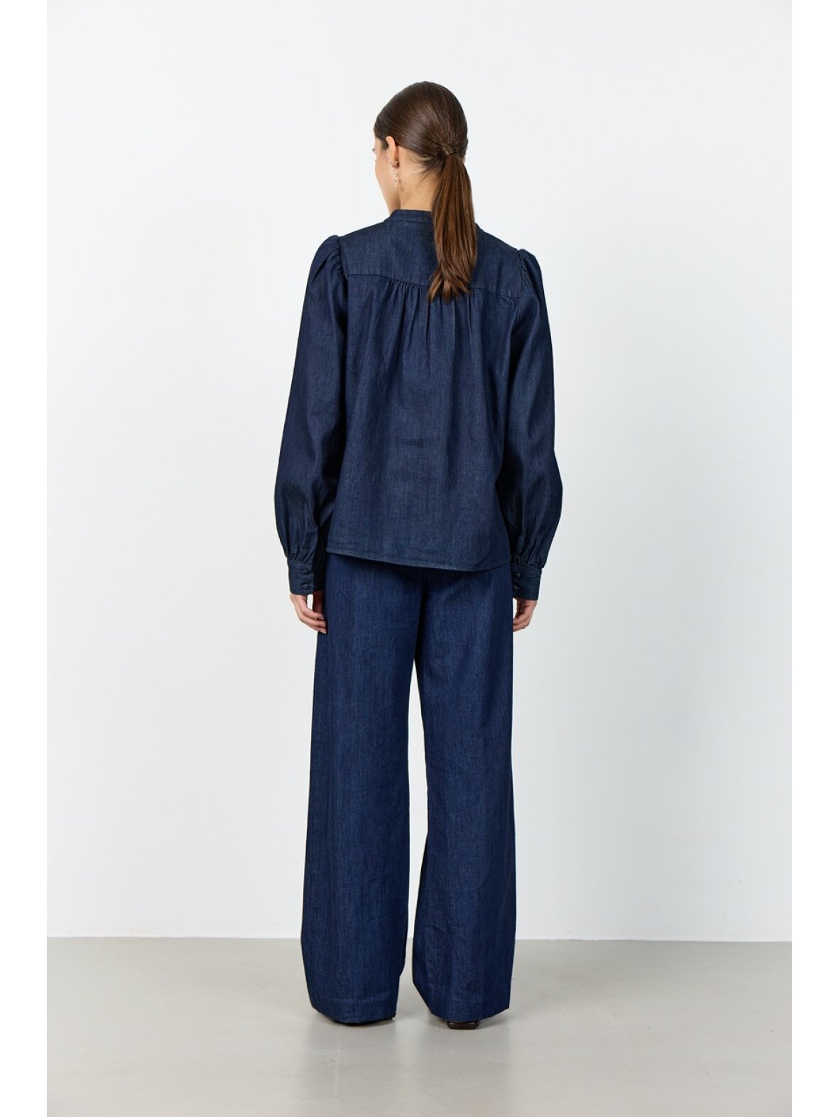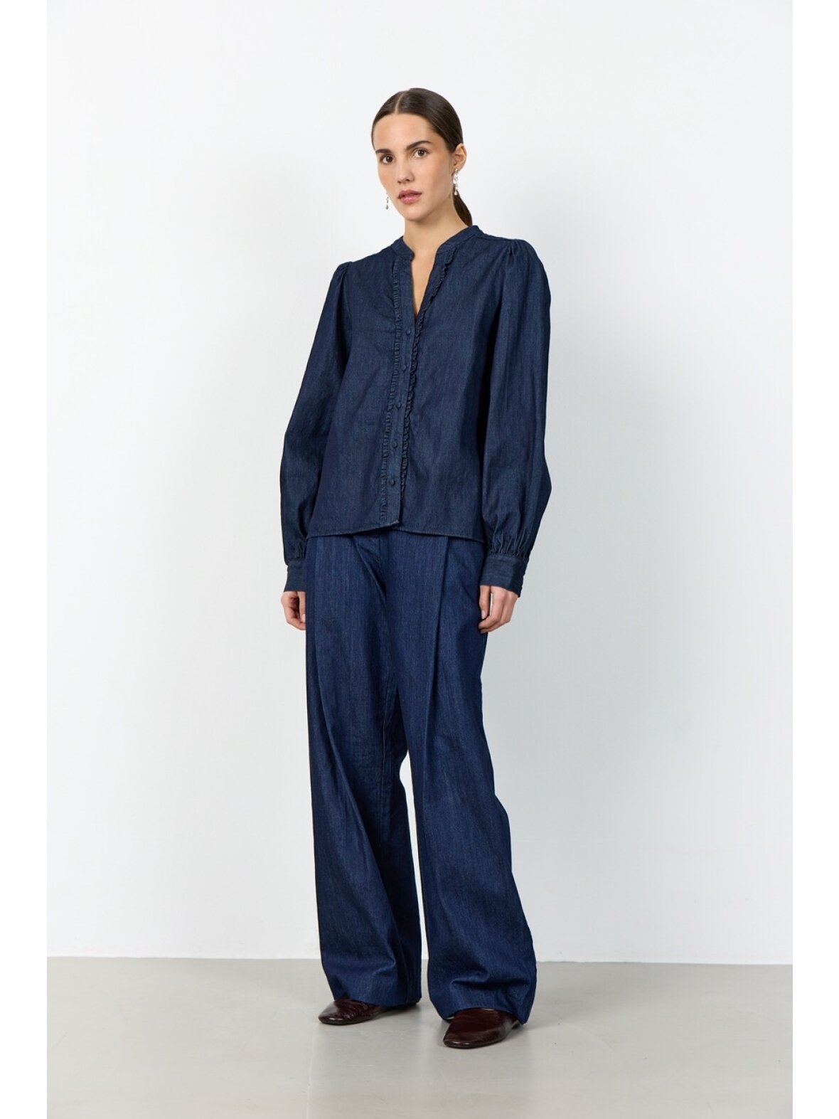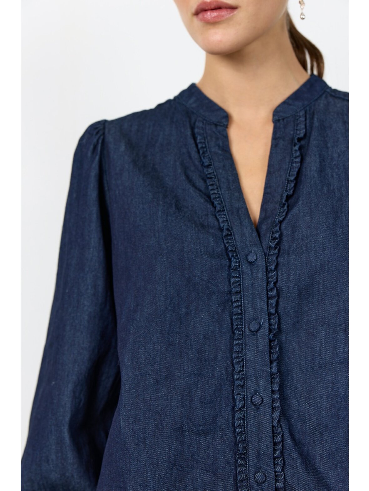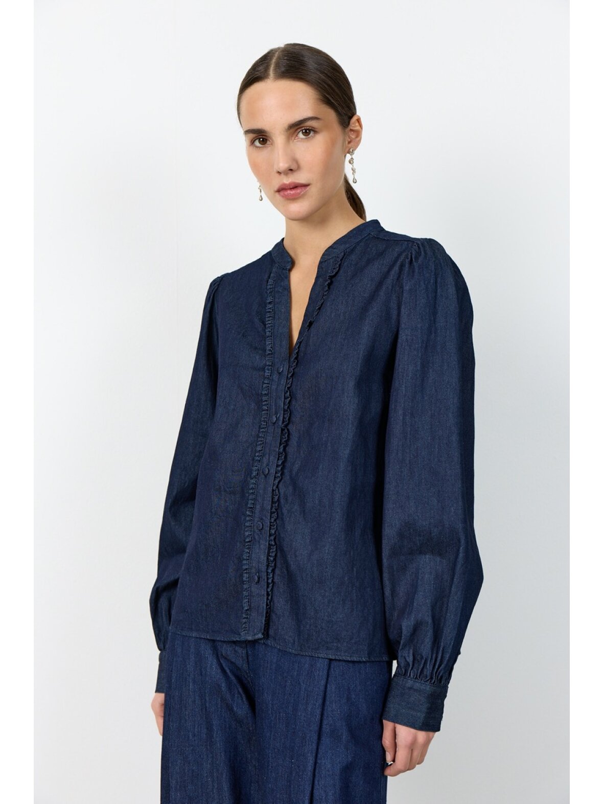 Skjorten er fremstillet i 100% bomuld, hvilket sikrer en blød tekstur og høj åndbarhed gennem hele dagen. Det absolutte midtpunkt er den fine flæsekrave, der giver et feminint modspil til det ellers minimalistiske design med button-down lukning og lange ærmer.