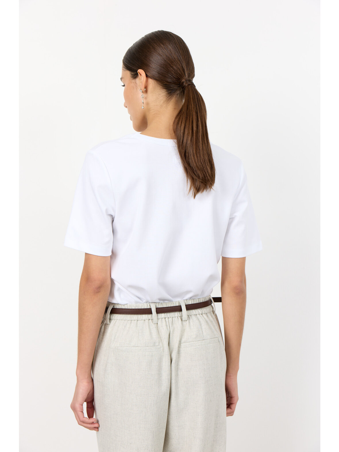 Opgrader din basisgarderobe med LR-PALOMA 2, en stilfuld T-shirt, der beviser, at enkelthed ofte er det mest elegante. Med sit rene snit og fokus på kvalitet er dette en overdel, du vil række ud efter sæson efter sæson.