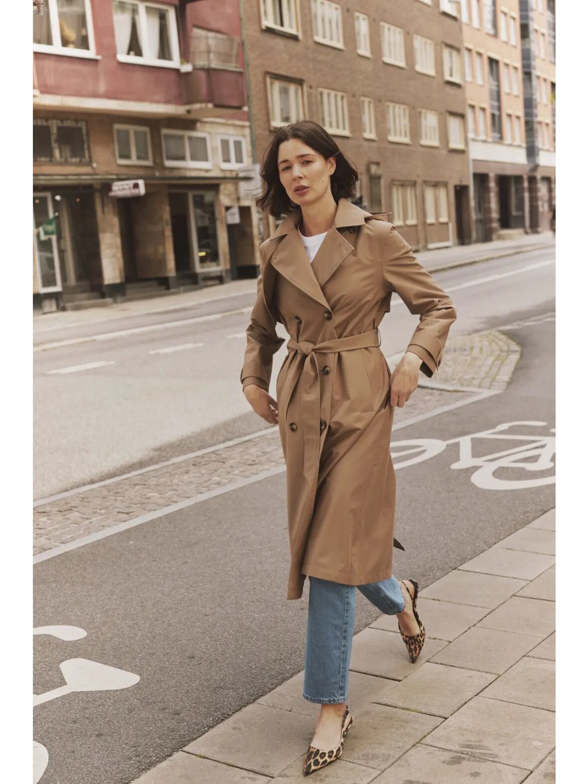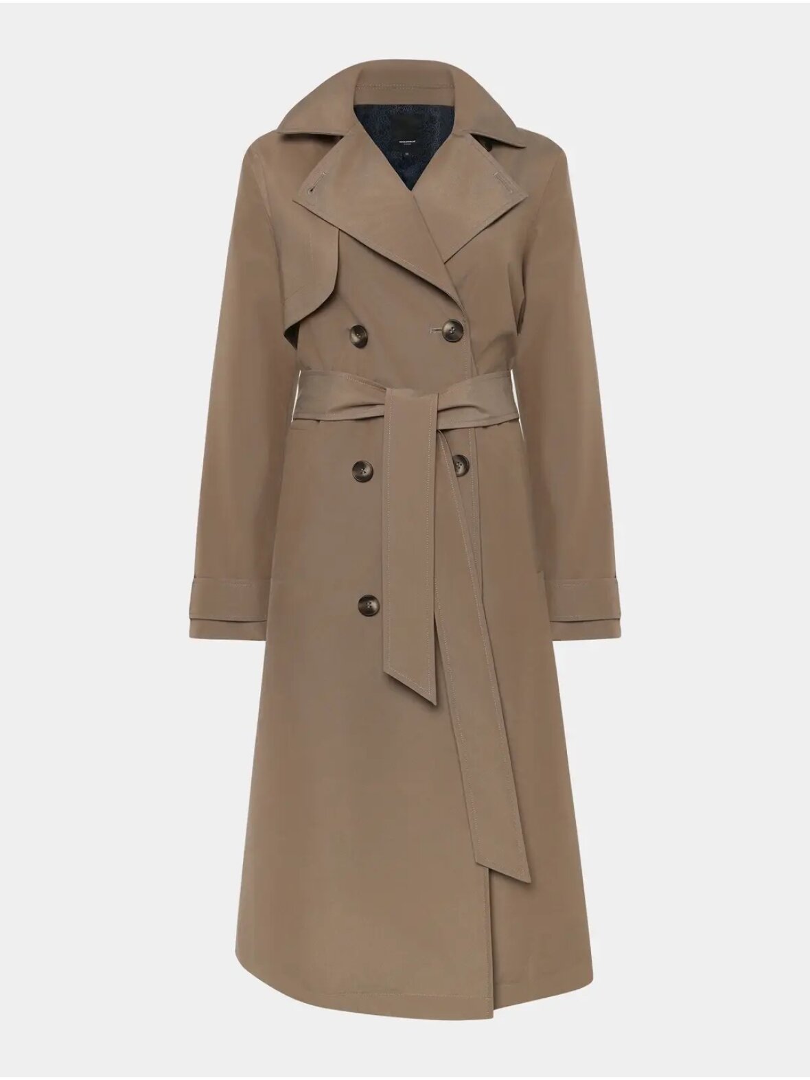 Din ultimative følgesvend gennem sæsonerne Novie er den perfekte knælange trenchcoat, designet til at bære dig ubesværet gennem det skiftende vejr. Den kombinerer den klassiske dobbeltradede silhuet med moderne, praktiske funktioner, hvilket gør den til en sand investering i din garderobe. Med sit afslappede snit og det tilhørende bælte kan du nemt skabe en feminin figur eller bære den løst for et mere moderne, uformelt look.
