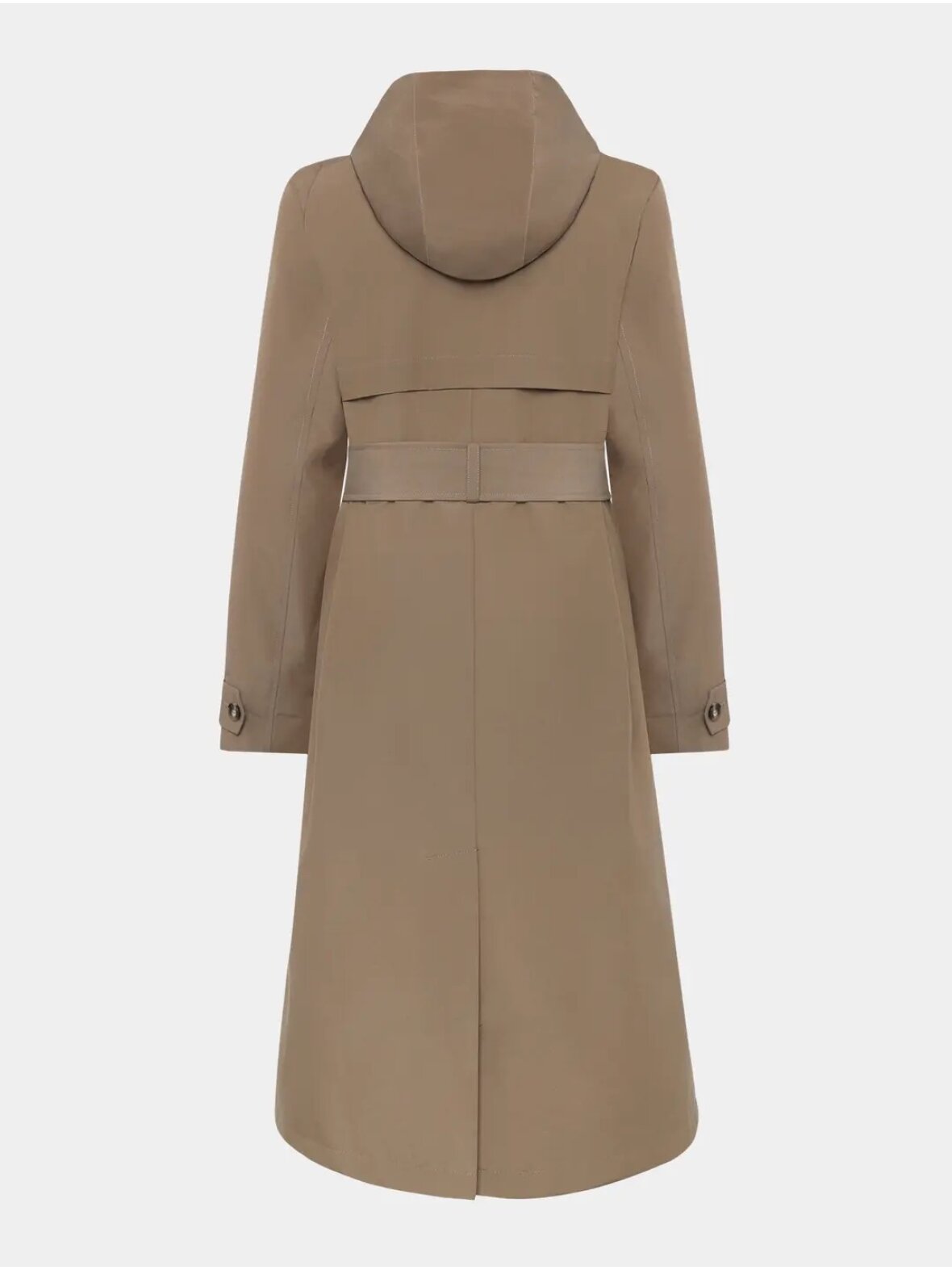 - Detaljer: Dobbeltradet, bælte i taljen, hætte og tapede sømme