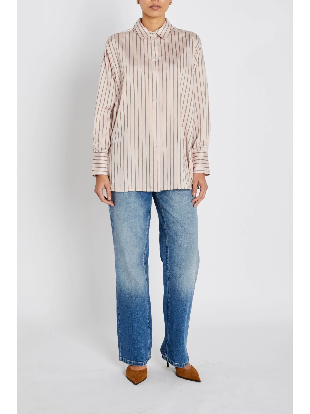 Skjorten fås i størrelserne 34, 36 og 40, så du kan finde den perfekte pasform til din kropsform. Den er designet med fokus på både stil og funktionalitet, hvilket gør den til en alsidig tilføjelse til din samling af bluser og skjorter. Kombiner den med et par jeans for et afslappet look, eller styl den med en nederdel for en mere elegant fremtoning.